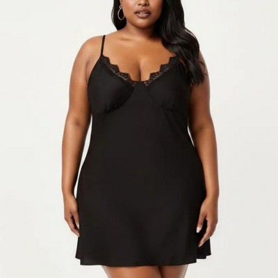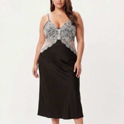 Anna-Kaci Lounge Women's Plus Size Lace Panel Chemise Slip Dress Adjustable Strap Sleepwear