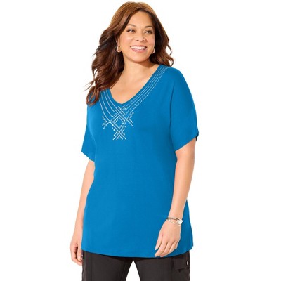 ellos Satin V-Neck Tunic With Blouson Sleeves