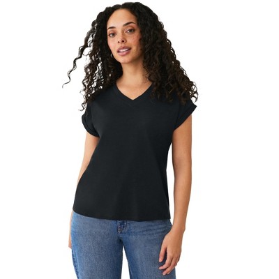 Ellos V-Neck Tee With Rolled Cuffs