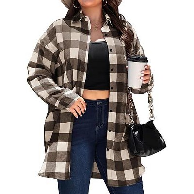 Zeagoo Womens Plus Size Plaid Flannel Shirt Long Sleeve Button Down Blouses Tops Shacket Jackets Coats with Pockets-YDL7-24W