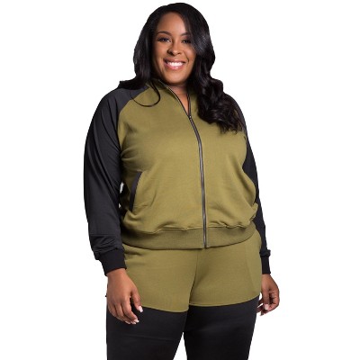 Poetic Justice Women's Plus Size Zip Up Conrast Blocked Sweatshirt Jacket