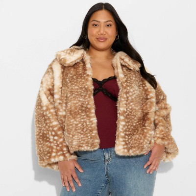 Women's Faux Fur Jacket - Wild Fable™ Tan Deer Hide