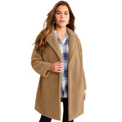 Roaman's Plus Size Mid Length Teddy Faux Fur Coat
