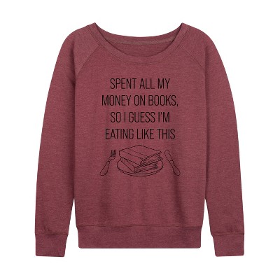 Women's - Instant Message - Spent All My Money On Books Lightweight French Terry Wide Neck Long Sleeve Graphic Shirt