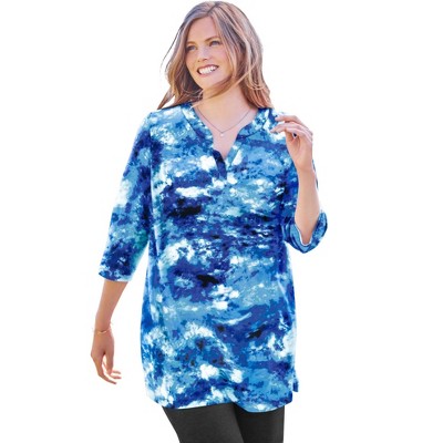 Woman Within Three-Quarter Sleeve Notch-Neck Tunic