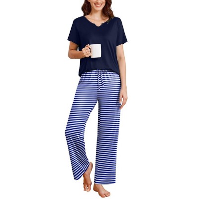 Ekouaer 2 Piece Womens Pajamas V Neck Short Sleeve Top and Long Pants Pjs Print Lounge Set Sleepwear