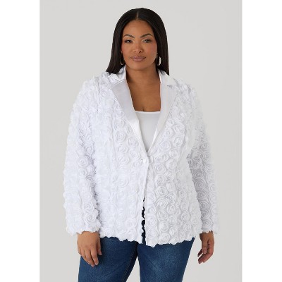 Women's Satin Paneled Rosette Blazer - Ashley Stewart