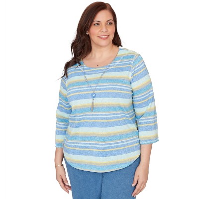 Alfred Dunner Womens Plus-Size Coastal Striped Top With Necklace, Blue, Size 3X