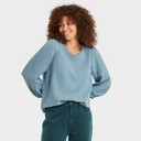 Alfred Dunner Womens Plus-Size Monotone Patch Print Knotted Detail Top, Blue, Size 3X