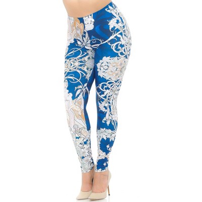 Creamy Soft Twisted Eden Vine Leggings - USA Fashion (One Size Plus,Blue)