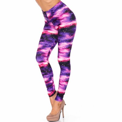 Creamy Soft Blue Fuchsia Nebula Leggings - USA Fashion (One Size Plus,Blue)