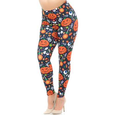 Creamy Soft Pumpkins and Halloween Candy Leggings - USA Fashion (One Size Plus,Multi Color Bold)