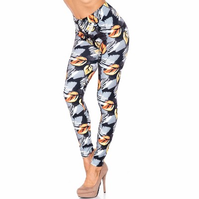 Creamy Soft Orange Leaf Breeze Leggings - USA Fashion (One Size Plus,Charcoal)