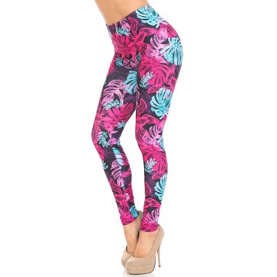 Creamy Soft Fuchsia Rose Leggings - USA Fashion (One Size Plus,Fuchsia)
