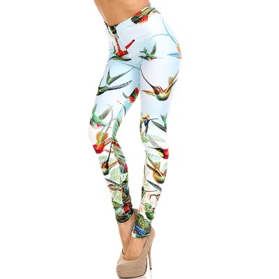 Creamy Soft Happy Hummingbirds Leggings - USA Fashion (One Size Plus,Blue)