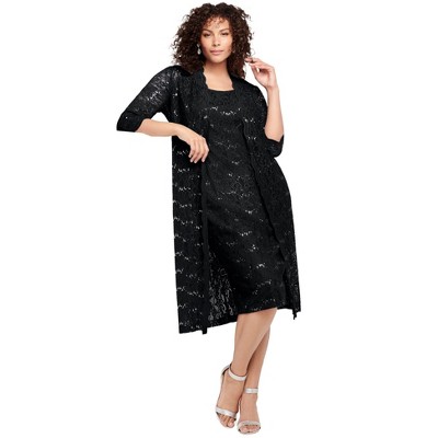 Roaman's Plus Size 3/4 Sleeve Formal Duster Sequin – Embellished Lace Dress Set