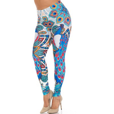 Creamy Soft Pristine Peacock Leggings - By USA Fashion (One Size Plus,Blue)