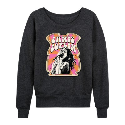 Women's - Janis Joplin - Lightweight French Terry Wide Neck Long Sleeve Graphic Shirt