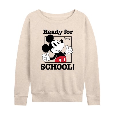 Women's - Disney - Minnie Black And White Lightweight French Terry Wide Neck Long Sleeve Graphic Shirt