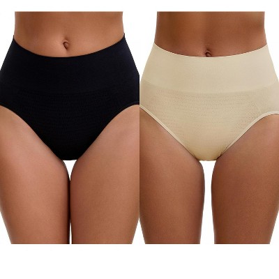 INSPIRE CHIC Women's High Waist Tummy Slimming Elastic Waistband Briefs Breathable Butt Lifter Underwear 2 Packs