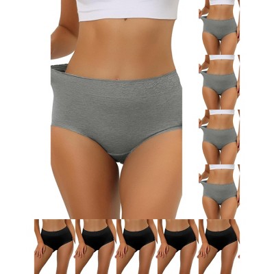INSPIRE CHIC Women's Cotton Solid High-Rise Lace Trim Tummy Control Full Coverage Briefs 10 Packs