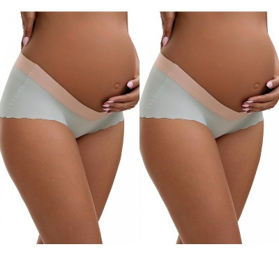 INSPIRE CHIC Women's Low Waist Seamless Ice Silk Maternity Briefs Pregnancy Under the Bump Underwear 2 Packs