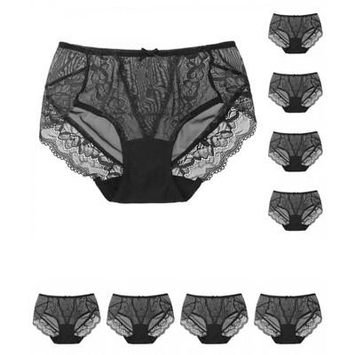 INSPIRE CHIC Women's Lace Mid-Waisted Full Coverage Stretchy Thin Breathable Striped Briefs 10 Packs