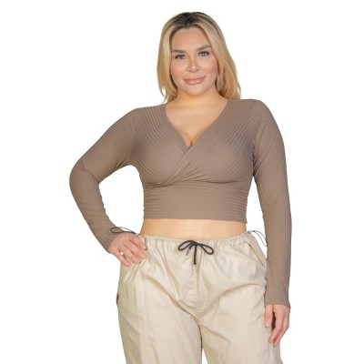 Slickblue Plus Size Ribbed Wrap Front Long Sleeve Top, Stretch Fit, Casual Style, Multiple Color Options, Size 1XL-3XL