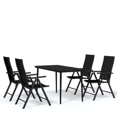 vidaXL Garden Dining Set Black PE rattan, powder-coated steel, glass - 55.1" table length Black 4