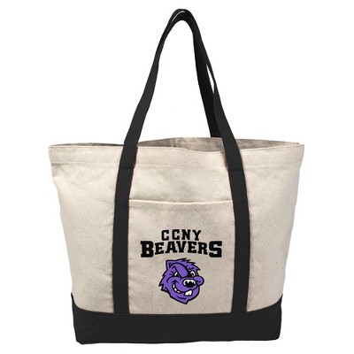 Brooklyn College Primary Logo Canvas Tote Bag With External Pocket, Reusable Shoulder Bag for Shopping, School, Beach