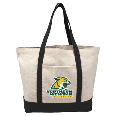 Northern Michigan University Primary Logo Canvas Tote Bag With External Pocket, Reusable Shoulder Bag for Shopping, School, Beach