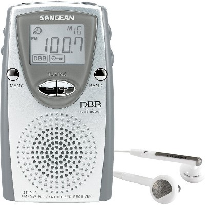 Sangean DT-210 FM-Stereo/AM PLL Synthesized Tuning Pocket Radio with 25 Presets and Dynamic Bass Boost