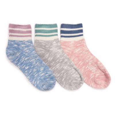MUK LUKS Women's Rib Cuff Mini Crew Socks, 3 Pair Pack, Blue/Pink, One Size Fits Most