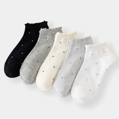 Anna-Kaci 5 Pairs Women’s Ankle Socks Soft Ribbed Top with Small Polka Dot Pattern for Loafers Ballet Flats or Sneakers