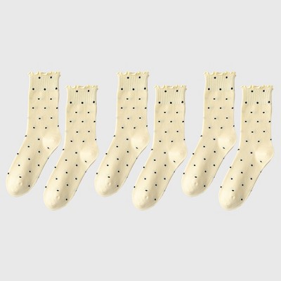 Anna-Kaci 3 Pairs Women's Crew Socks with Polka Dot Pattern and Panda Embroidery