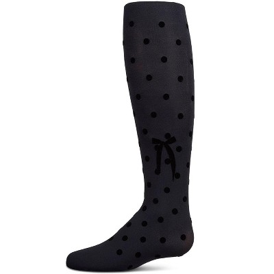 Memoi Girls Opaque Polka Dot Bow-Trimmed Flocked Tights