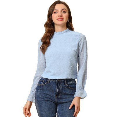 INSPIRE CHIC Women's Swiss Dots Long Sleeve Mock Neck Blouse