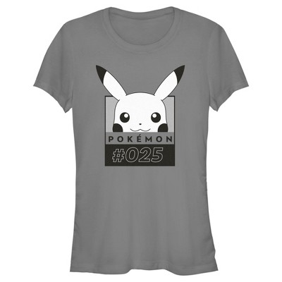 Juniors Womens Pokemon Pikachu Black and White T-Shirt