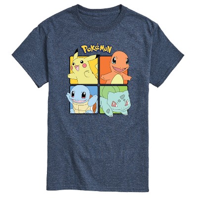 Men's - Pokémon - Pikachu Charmander Bulbasaur Squirtle Square Short Sleeve Graphic T-Shirt