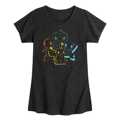 Girls' - Pokémon - Charmander Bulbasaur Charmander Pastel Starters Fitted Short Sleeve Graphic T-Shirt