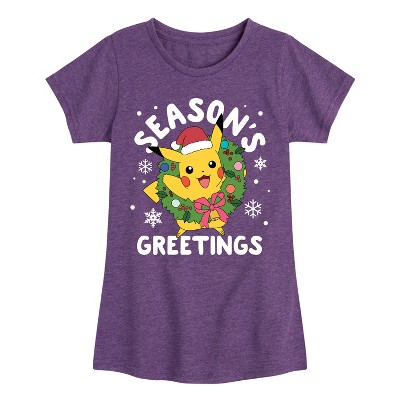 Girls' - Pokémon - Pikachu Seasons Greetings Fitted Short Sleeve Graphic T-Shirt