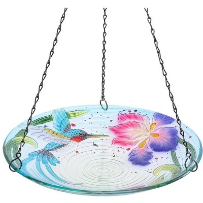 Etokfoks 11 Inch Hanging Glass Bird Bath for Outdoor Use Bright Kaleidoscope Design Bowl Bird Feeder for Garden Yard Patio Decor 1 Piece
