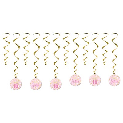 Beistle Pink and Gold Sweet 16 Whirls, 17½"-30½", Pack of 24 Gold