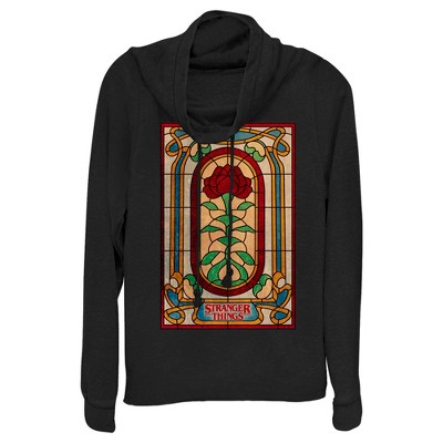 Juniors Womens Stranger Things Cartoon Gang Cowl Neck Sweatshirt