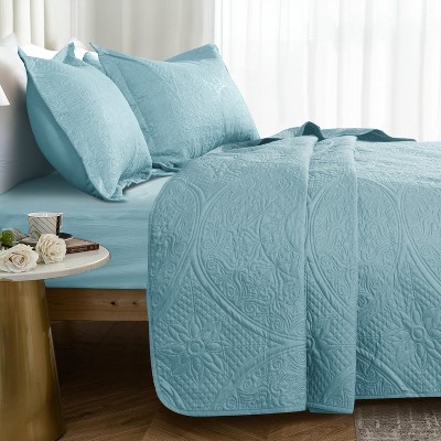- blue floral print bedding