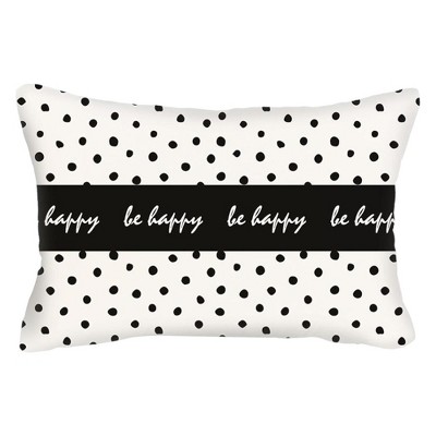 HomeRoots 12" X 20" Black And White Lumbar Be Happy Polka Dot Throw Pillow Cover