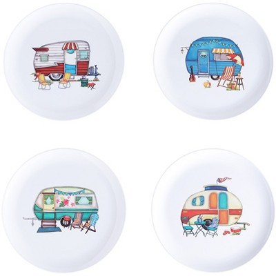 Gibson Home Rockabye 4 Piece Melamine Dinner Plate Set in Dark Pink