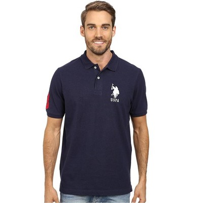 Perry Ellis Mens Mixed Media Polo Shirt, blue, Medium