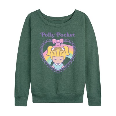 Women's - Polly Pocket - Polly Pocket Heart Lightweight French Terry Wide Neck Long Sleeve Graphic Shirt