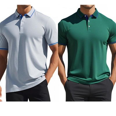 INSPIRE CHIC Men's Short Sleeve Contrast Color Summer Formal Golf Polos 2 Packs